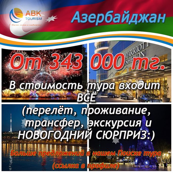 Новогодние туры в Баку от ABK Tourism! Вылеты из Алматы и Астаны от 345 000 тенге! Больше предложений в нашем Поиске тура: Звоните, спрашивайте, мы всегда рады помочь подобрать туры в любую точку мира!