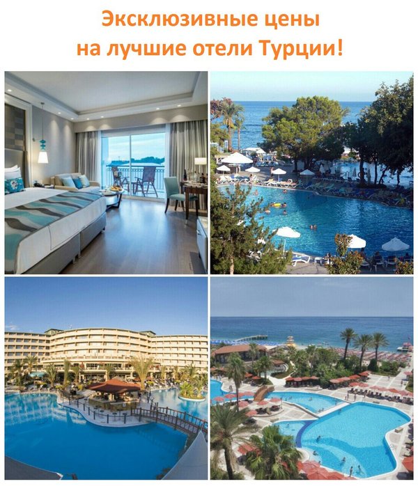 BELLIS DELUXE HOTEL 5* — от 70 USD/PP RIXOS BELDIBI 5* — от 73 USD/PP RIXOS SUNGATE 5* — от 83 USD/PP RIXOS TEKIROVA 5* — от 87 USD/PP SUSESI LUXURY RESORT 5* — от 92 USD/PP MARDAN PALACE 5* — от 92 USD/PP CALISTA LUXURY RESORT 5* — от 144 USD/PP