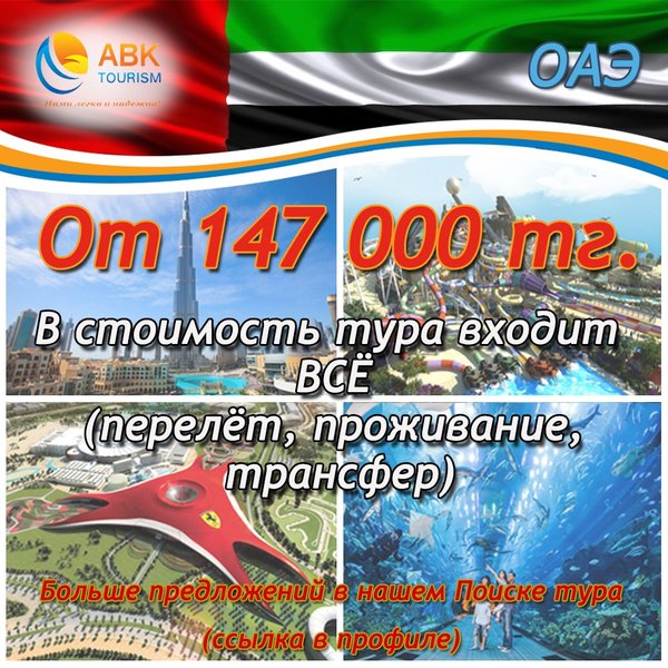 ДРУЗЬЯ! Отправляйтесь на осенние каникулы в ОАЭ вместе с ABK Tourism! Больше интересных предложений вот здесь: