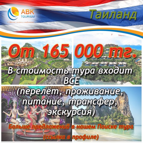 Друзья! Мы рады сообщить о прекрасной возможности отправиться в живописный и яркий Таиланд по доступным ценам от туроператора ABK Tourism! Больше интересностей в нашем Поиске тура:
