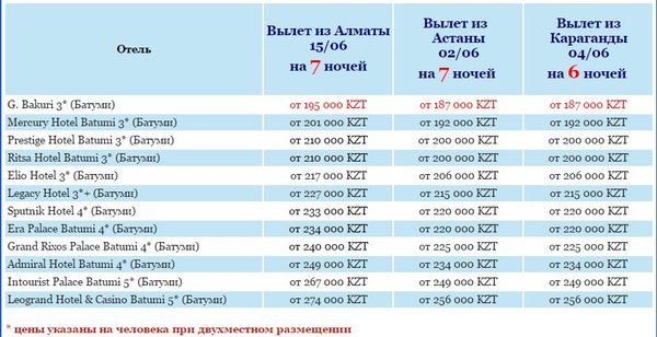Уважаемые коллеги! Приглашаем Вас познакомиться с Турцией или освежить память, узнать новые отели, приятно отдохнуть на побережье средиземного моря и приобрести новых друзей. АЛМАТЫ 18.05—25.05.2017 120 000 kzt / 380 usd АСТАНА 15.05—22.05.2017 120 000 kzt / 380 usd Просим бронировать онлайн, высылать визитки участников: reservation3@kompastour.kz В стоимость включено: — Авиаперелет — Трансферы по программе — Размещение в отелях 5* — Питание all inclusive — Осмотр отелей Не входит: — Медицинская страховка — Личные расходы