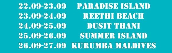 ИНФО-ТУР НА МАЛЬДИВЫ 21.09—27.09.2016 — 899 USD В стоимость включено: — авиаперелет (с вылетом из Алматы) Алматы-Дубай-Мале — Коломбо (тех.посадка на дозаправку) — Дубай — Алматы — размещение в отелях 5 ночей на базе FB — все трансферы по программе — инспекция отелей Заявки принимаются на адрес: 8 /727/ 376-35-05 Екатерина вн. номер: 707 SKYPE: reservation.kompastour e-mail: reservation@kompastour.kz