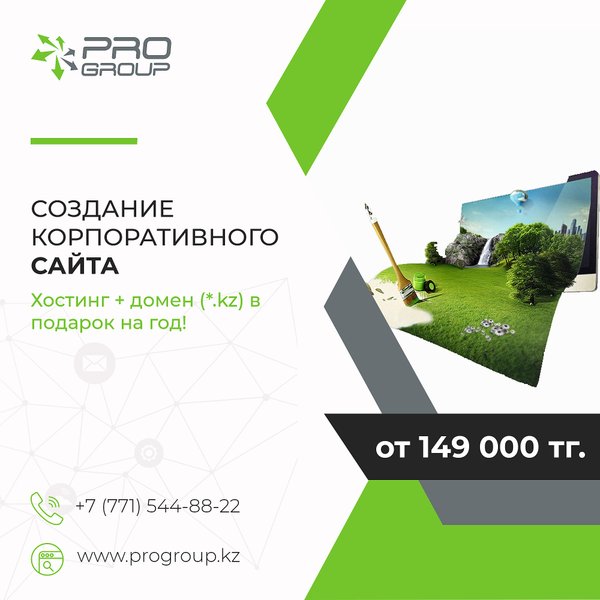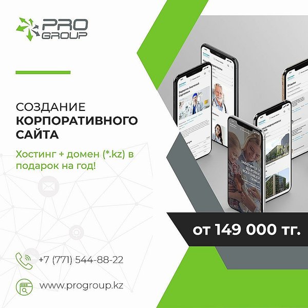 й дизайн от 359 000 тнг. Качественный корпоративный сайт предоставит полноценную информацию о продукции и услугах вашей компании. Также это эффективный инструмент, который поможет расширить клиентуру и географию вашего бизнеса. Агентство Progroup ️ ️ Алматы, ул. Айманова, 220 progroup.kz