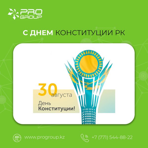 ️ Дорогие друзья, поздравляем Вас с замечательным праздником День Конституции Республики Казахстан! Желаем вам всего самого наилучшего, проведите этот день в кругу родных и близких. Агентство Progroup ️ ️ Алматы, ул. Айманова, 220 progroup.kz