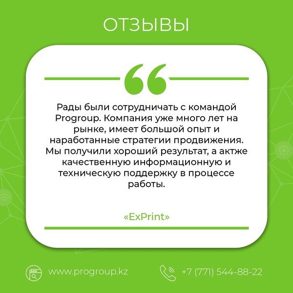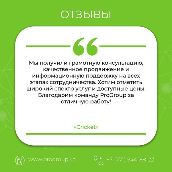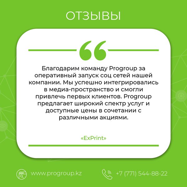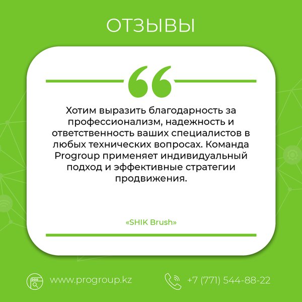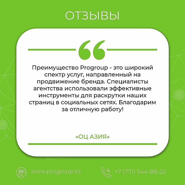 Отзыв: компания AQNIET ⠀ Благодарим за теплый отзыв и желаем дальнейшего процветания! ⠀ ️ ️ Алматы, ул. Айманова, 220 progroup.kz