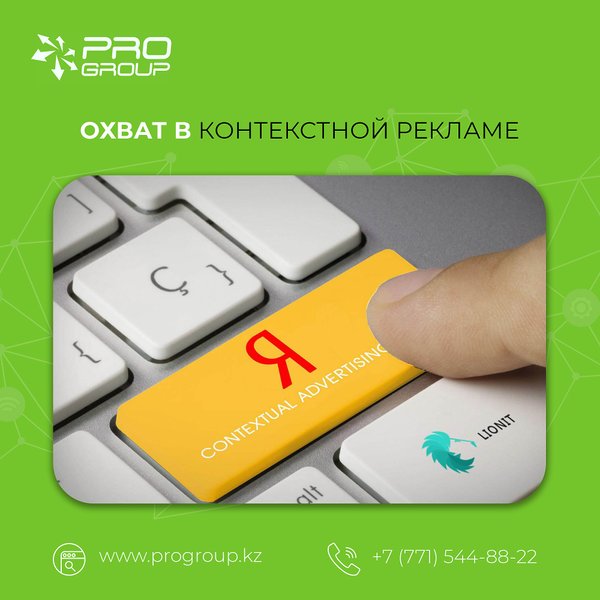 Большой охват аудитории в контекстной рекламе Сегодня почти у каждого есть доступ ко Всемирной сети через смартфон, планшет или компьютер, благодаря этому обеспечивается большой охват аудитории. Контекстная реклама показывается не только в главных поисковых системах вроде Яндекса, но и на сотнях тысяч сайтов его партнерской сети. Все это позволяет донести ваше рекламное сообщение до огромного количества людей и привлечь потенциальных клиентов. Агентство Progroup ️ ️ Алматы, ул. Айманова, 220 progroup.kz