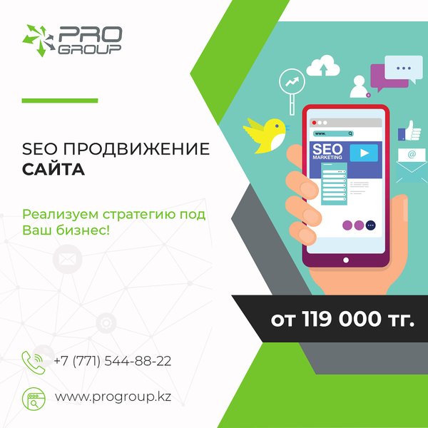 ние имеет долгосрочный эффект. Так даже при остановке финансовых вливаний результаты SEO положительно влияют на позиции сайта еще месяцы и даже годы. ⠀ Закажите SEO продвижение в ProGroup! ️ ️ Алматы, ул. Айманова, 220 progroup.kz