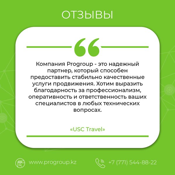 Отзыв: туристическая компания USC Travel Благодарим за доверие и тёплый отзыв! ⠀ ️ ️ Алматы, ул. Айманова, 220 progroup.kz