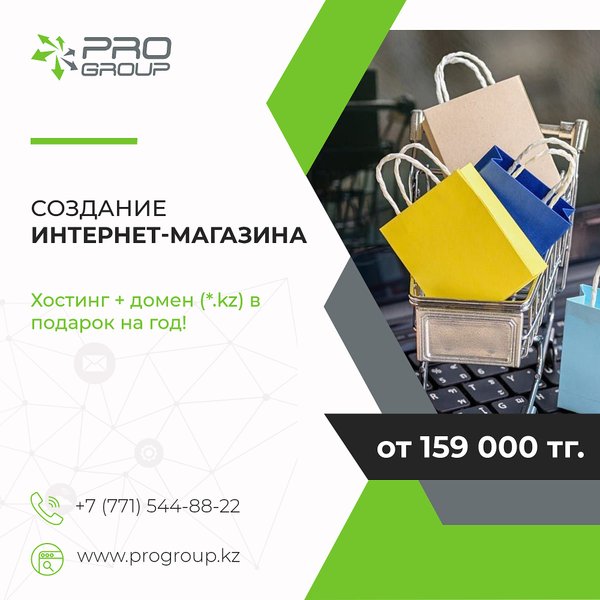 НА РЕКЛАМУ И SEO ПРИ ЗАКАЗЕ ЛЮБОГО САЙТА! Также вы получите хостинг + домен (*.kz) в ПОДАРОК на год! Нуждаетесь в качественном интернет-магазине? Агентство Progroup имеет большой опыт работы в создании сайтов и landing page самой различной сложности. Обратитесь к нам и вы получите отличный результат по приемлемой цене Закажите разработку качественного интернет-магазина на выгодных условиях! ️ ️ Алматы, ул. Айманова, 220 progroup.kz