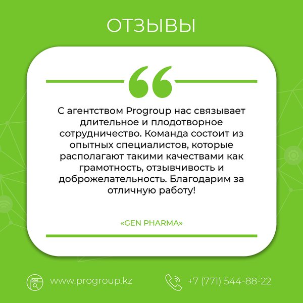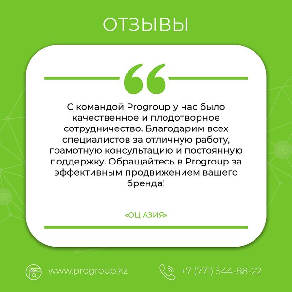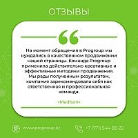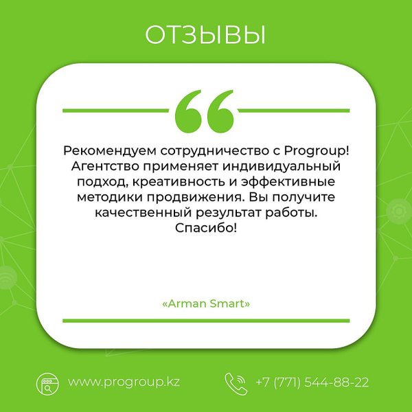 Благодарим за отзыв компанию «Arman Smart»! Агентство Progroup ️ ️ Алматы, ул. Айманова, 220 progroup.kz