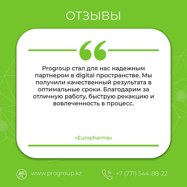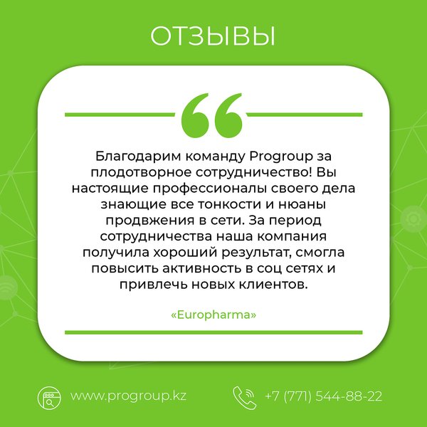Отзыв: Europharma, сеть аптек Благодарим за высокую оценку нашей работы! ⠀ ️ ️ Алматы, ул. Айманова, 220 progroup.kz