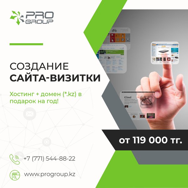 тнг. ⠀ Сайт-визитка не требует больших финансовых и временных затрат на создание. Агентство «Progroup» имеет многолетний опыт в создании сайтов, специально для вас мы разработаем удобный и функциональный сайт по оптимальной цене. Ждем ваши заявки! ️ ️ Алматы, ул. Айманова, 220 progroup.kz