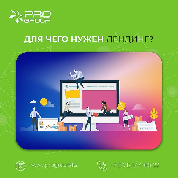Лендинг (landing-page) – посадочная страница, состоящая из одной страницы. Ее цель побудить пользователя совершить определенное действие — например, приобрести товар или забронировать определенную услугу. Функции лендинга: ️обеспечивает быстрый захват внимания и удержание интереса ️кратко информирует об услугах компании ️предоставляет информацию об акциях и скидках ️побуждает совершить целевое действие Агентство Progroup ️ ️ Алматы, ул. Айманова, 220 progroup.kz