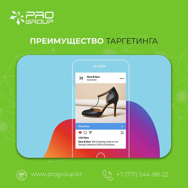 аничку вашей компании в социальных сетях, с описанием товаров или услуг ️можно выбрать различные целевые группы по широкому перечню параметров (география, возраст, пол, образование, интересы). ️возможность работать с каждой группой пользователей отдельно, создавать разные объявления для разной аудитории. Агентство Progroup ️ ️ Алматы, ул. Айманова, 220 progroup.kz