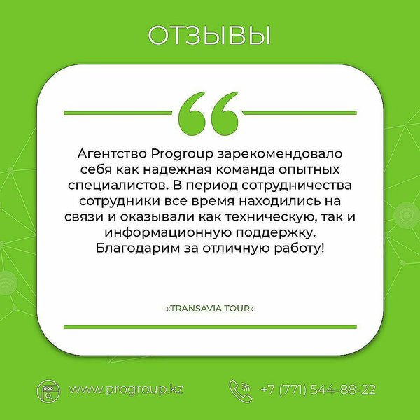 Отзывы наших клиентов: туристическое агентство «TRANSAVIA TOUR» ⠀ Очередной приятный отзыв от нашего клиента, спасибо ⠀ Агентство Progroup ️ ️ Алматы, ул. Айманова, 220 progroup.kz