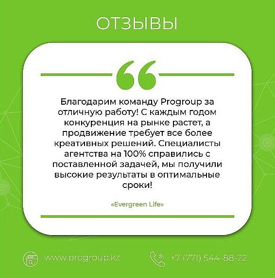 Отзыв: Evergreen Life Products ⠀ Мы очень рады, что наши решения стали для вас максимально эффективными. Благодарим за высокую оценку нашей работы! ⠀ ️ ️ Алматы, ул. Айманова, 220 progroup.kz