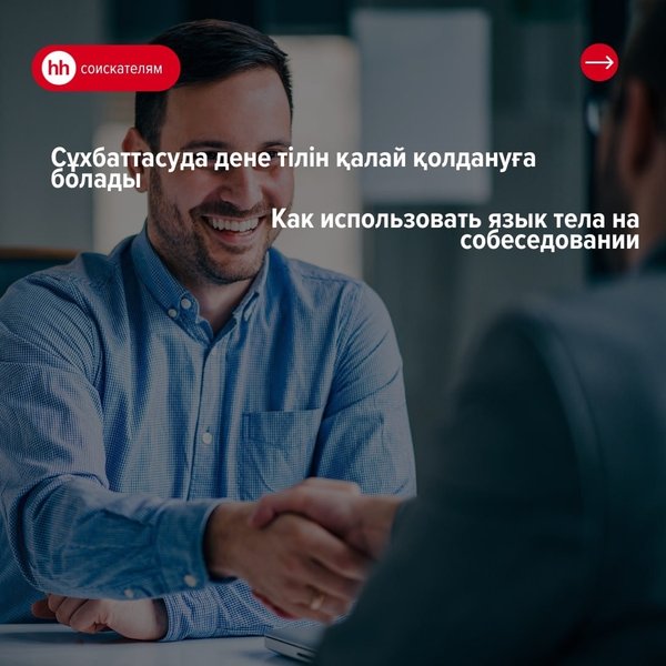 Мы часто советуем молодым специалистам, как составить привлекательное резюме и подготовиться к собеседованию. Но язык тела также играет важную роль. Позы и жесты могут говорить красноречивей слов, демонстрировать профессионализм и уверенность. Как правильно использовать язык тела на собеседовании? _______________________ Біз жиі жас мамандарға тартымды түйіндеме жасауға және сұхбаттасуға дайындалуға кеңес береміз. Бірақ дене тілі де маңызды рөл атқарады. Дене қалпы мен қимылдар, сөздерге қарағанда, айқын бола алады, кәсіпқойлық пен сенімділікті… — Читать дальше