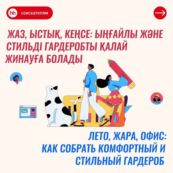 Лето — традиционно высокий сезон найма: многие соискатели начинают искать вакансии и ходить на собеседования. Некоторые решаются на кардинальные перемены и пробуют себя в новой сфере. ___________________________ Жас — дәстүрлі түрде жоғары жалдау маусымы: көптеген жұмыс іздеушілер бос жұмыс орындарын іздеп, сұхбаттасуларға бара бастайды. Кейбіреулері түбегейлі өзгерістерге шешім байлайды және өздерін жаңа салада сынап көреді.