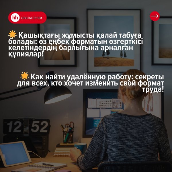 Ежедневно у каждого человека накапливаются десятки потерянных минут. Когда вы ищете работу, ваше время ещё дороже. С инструментами HeadHunter поиск работы может значительно ускориться! ___________________ Күн сайын әр адам ондаған минутты жоғалтады. Жұмыс іздеу кезінде, сіздің уақытыңыз одан да қымбат. HeadHunter құралдарымен жұмыс іздеу айтарлықтай тездетілуі мүмкін!