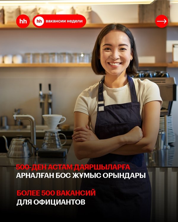 По данным на июнь 2025 года на сайте hh.kz размещено более 1000 вакансий для поваров. А какая подходит именно вам? Переходите на сайт hh.kz и найдите работу своей мечты! Ссылка на вакансии в сторис • 2025 жылдың маусым айындағы деректер бойынша hh.kz сайтында аспазшыларға арналған 1000-нан астам бос жұмыс орны бар. Ал сізге қайсысы сәйкес келеді? hh.kz сайтына өтіп, арманыңыздағы жұмысты табыңыз! Вакансияларға сілтеме stories-те