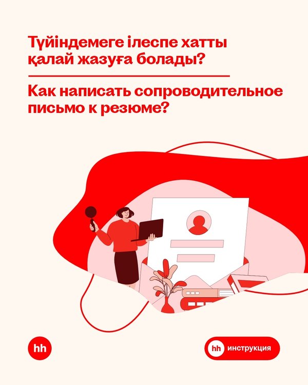 Сопроводительное письмо — это важное дополнение к вашему резюме. Оно помогает подчеркнуть ваши навыки, опыт и мотивацию. Хотите увеличить шансы на получение работы? Читайте наши советы! ___________________ Ілеспе хат – бұл сіздің түйіндемеңізге маңызды қосымша. Бұл сіздің дағдыларыңызды, тәжірибеңізді және уәждемеңізді көрсетуге көмектеседі. Жұмысқа орналасу мүмкіндігін арттырғыңыз келе ме? Біздің кеңестерімізді оқыңыз!