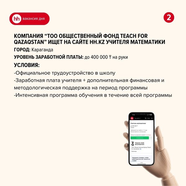 По данным на октябрь 2024 года на сайте hh.kz размещено более 1 400 вакансий для учителей. А какая подходит именно вам? Переходите на сайт hh.kz и найдите работу своей мечты! Ссылка на вакансии ️