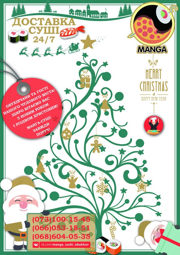 НАШ РІЗДВЯНИЙ РОЗІГРАШ! 8 січня, ми розіграємо СЕРТИФІКАТ 100грн на наше меню!!! ДЛЯ участі потрібно: 1. Бути / Стати учасником пабліка Манга-Суши | Обухов | Доставка 2. «Розказати Друзям » (даний пост) 3. Зберегти репост на стіні до закінчення розіграшу! Переможець буде обраний генератором випадкових користувачів Результат конкурса: 073-100-15-45 / 068-604-05-35 / 066-053-18-51