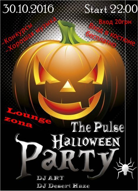 Друзья ждем всех на самом зажигательном Halloween всех времен,будет очень страшно и весело одновременно,для вас как всегда лучшие напитки от нашего бармена Дмитрия,коктель вечера«КРОВАВАЯ МЕРИ«В этот вечер для вас будут играть DJ ART,DJ Desert Haze.Также не забываем о костюмах(Вход в костюме бесплатно) в конце вечеринки будет конкурс на лучший костюм,так что одевайте самые мрачные костюмы)))А еще вас ждет не реально крутой сюрприз.Ждем вас дорогие гости!!!