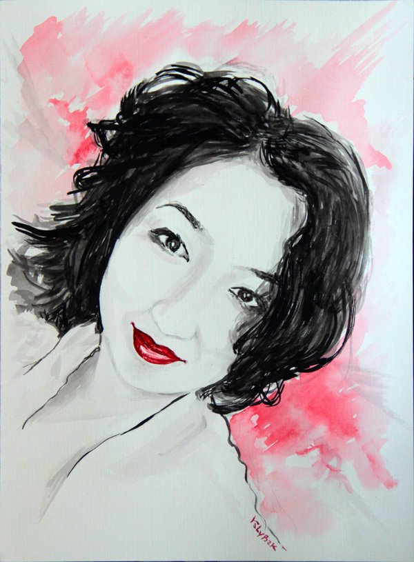 Портрет Женщины. Бумага/Акварель А3 формат в раме Художник: Бекбаганбетов Калыбек Портреты Акварелью на бумаге с рамой. Все заказывают Портреты у Калыбека Бекбаганбетова. Ватсап: Insta: Almaty_KalybekArt