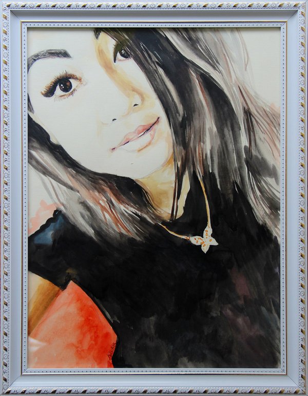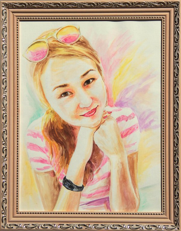 Портрет девушки. Бумага/акварель. А3 формат в раме. Художник: Бекбаганбетов Калыбек Звоните по номеру сейчас: