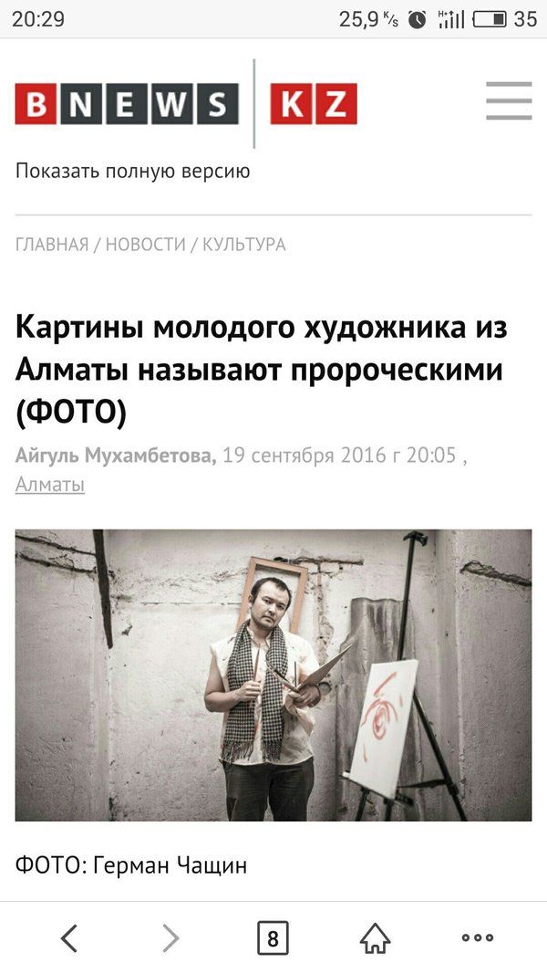 Вышла в свет еще одна статья обо мне: Картины молодого художника из Алматы называют пророческими (ФОТО) Спасибо Айгуль Мухамбетовой и редакции БньюсКЗ.