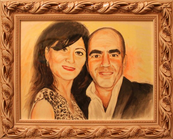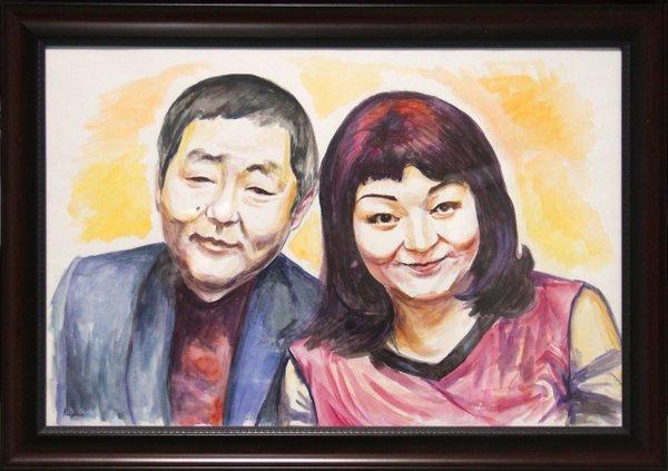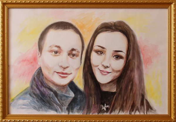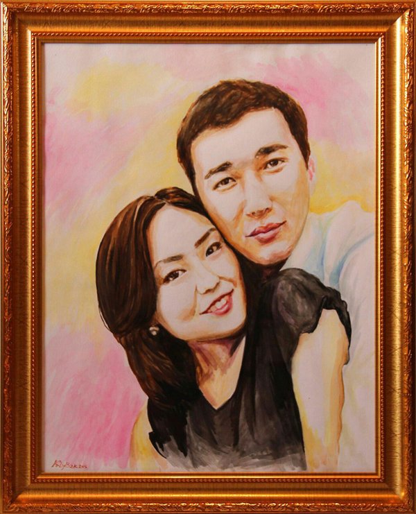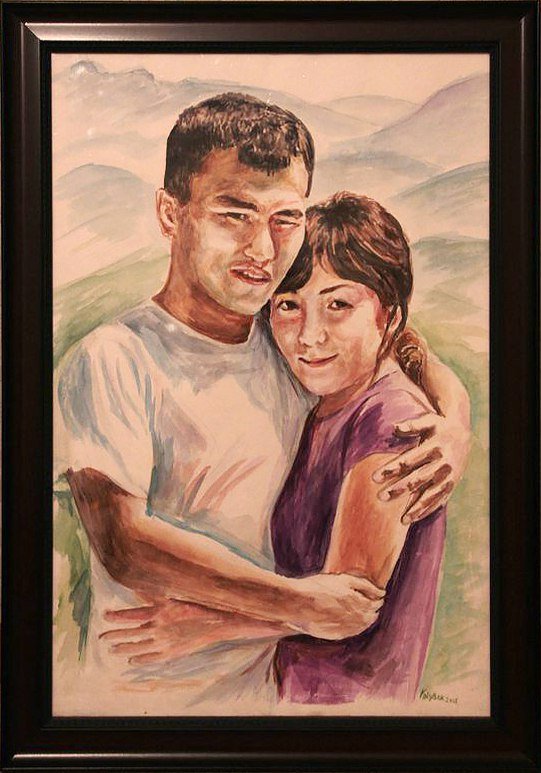 Портрет пары. Акварель/бумага 60х40см. В раме. Художник: Бекбаганбетов Калыбек Все заказывают Портреты у меня! Ватсап: