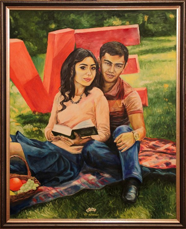 Портрет пары «Love Story». Масло/холст. Рама. 100х80см. Художник: Бекбаганбетов Калыбек Пожалуйста, сделайте репост, порекомендуйте друзьям.
