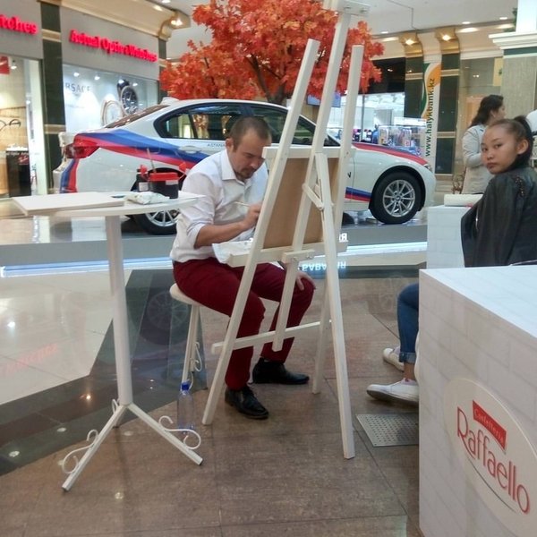 Калыбек Бекбаганбетов (24.09.2016): Сегодня с утра до вечера нон-стоп рисовал силуэты людей по заказу Рафаэлло в Мегацентре. Очень понравилось рисовать силуэты. И люди были рады благодарны! Спасибо компаниям #Finedesignkz и #Raffaellokz. И поздрааляю #MegaCenter с Днем Рождения!