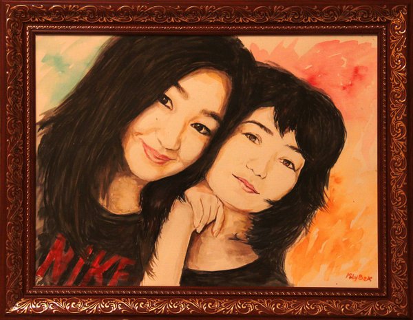 Портрет матери и дочки. 40х30см. Акварель/бумага. Художник: Калыбек Бекбаганбетов.