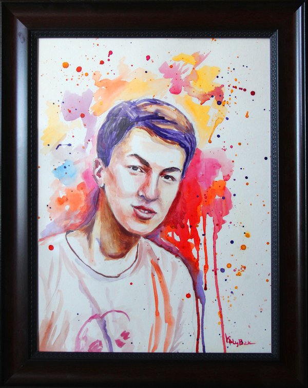 Портрет парня. 40х30см Акварель/бумага. Художник Бекбаганбетов Калыбек. Художник Алматы Калыбек Бекбаганбет Казахстан