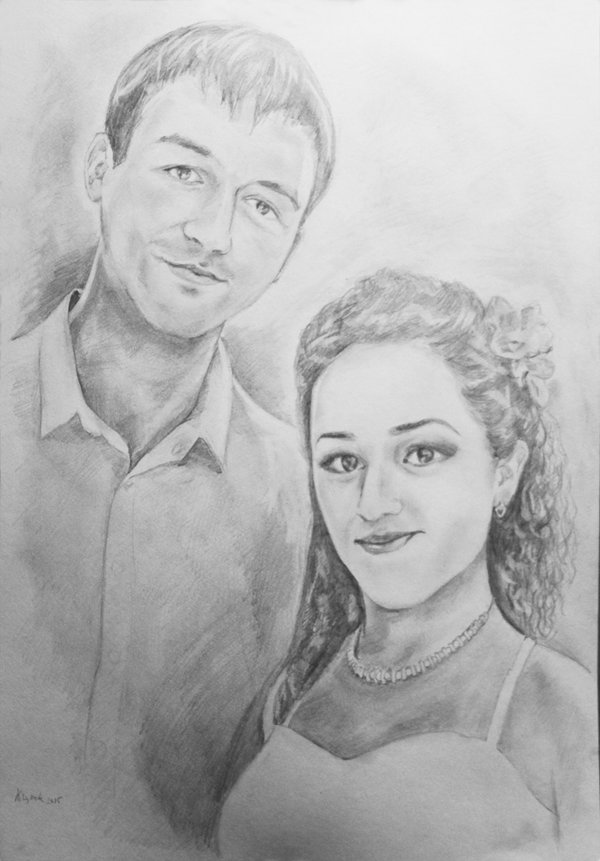 Портрет пары. Бумага/карандаш. А3 формат в раме. Художник: Бекбаганбетов Калыбек Звоните по номеру сейчас: