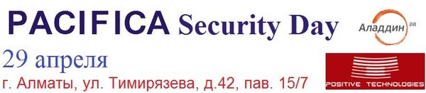 ти, Вы получите практические рекомендации, ознакомитесь с новыми продуктами мировых лидеров рынка по ИБ. В качестве докладчиков на семинар приглашены специалисты из компаний Аладдин Р.Д. и Positive Technologies, официальным представителем которых на территории Республики Казахстан является ТОО Пацифика. Дата и место проведения: 29 апреля 2015 года ул. Тимирязева 42, АТАКЕНТ Павильон 15/7 Дополнительная информация по тел.: info@pacifica.kz