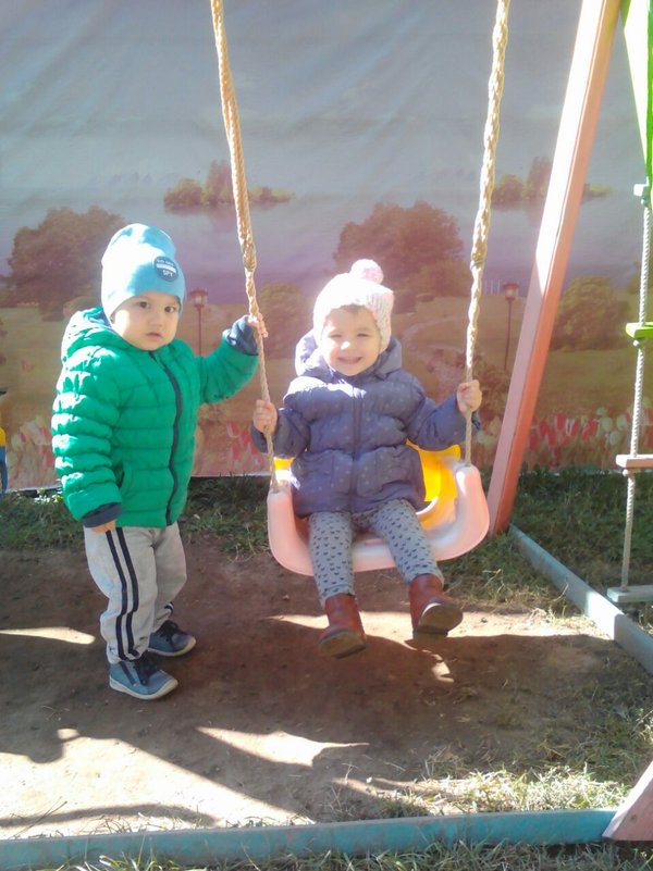 А мы отдыхаем и качаем друг друга на качельках по очереди! Всех с началом выходных!