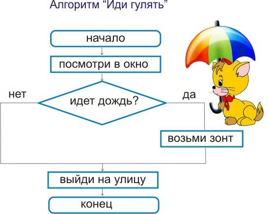 ение. 4. Ромб – проверка какого-то условия, «Да-нет» вопрос. 5. Стрелки, показывающие путь к следующему блоку. Кроме того, есть ряд правил, как блок-схему надо составлять: 1. Блоки должны быть соединены стрелочками. Нельзя использовать просто линии, иначе станет не понятно в каком направлении по алгоритму двигаться. 2. У любого блока может быть только одно входная и одна выходная стрелочка. Исключение – блок условия. 3. У блока условия всегда одна входящая и две исходящие стрелки. Поэтому вопрос должен быть закрытый, с возможность ответить только «да» или «нет». 4. Обычно движение по блок-схеме идет сверху вниз. Но если нам нужно вернуться назад, то нельзя возвращаться больше чем на три блока вверх. 6. Внутри схемы может быть подзадача, алгоритм которой расписывается в отдельной блок-схеме. 7. Все блок-схемы начинаются и заканчиваются специальным блоком. Иначе, не всегда можно будет понять, что алгоритм уже выполнен. По сути, блок-схему можно расписать практически под любую профессиональную или бытовую задачу. Только представьте себе, как мама оставляет на холодильнике четкую и понятную блок-схему как разогреть суп. И, возможно, это может существенно упростить нам жизнь. Приведите в комментариях самый оригинальный пример использования блок-схемы в повседневной жизни. схема