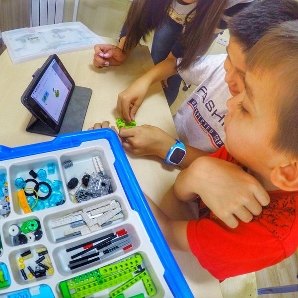 Даже самые маленькие наши ученики уже приступили к обучению и собирают своих роботов и учаться программировать их.