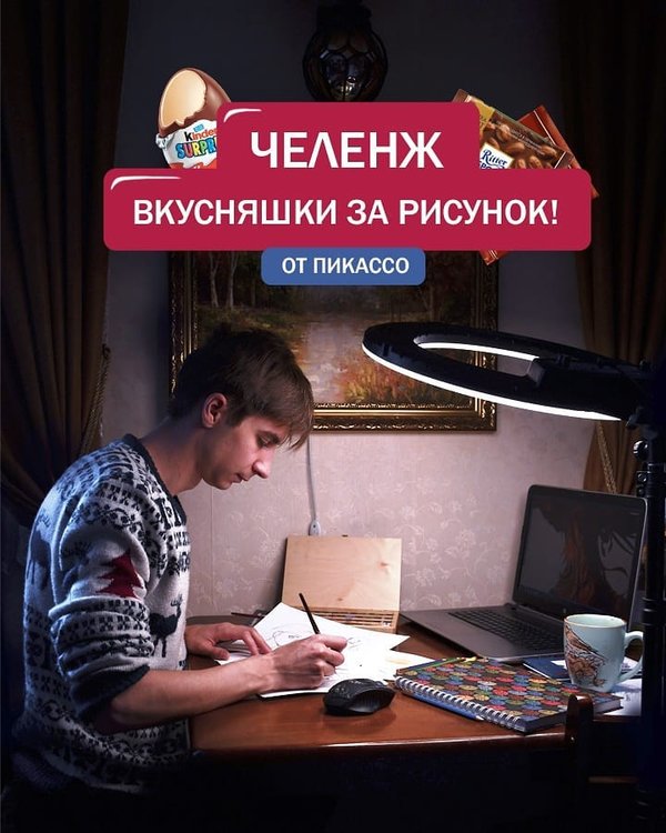Господа и дамы мы запустили челенж, и там даже есть вкусные призы)) Хотя суть не в них, а просто прикольно поучаствовать, показать делаете в карантин или порисовать на общие темы))) Он уже в нашей ленте. там же все правила. По хештегу #picasochill можно будет посмотреть кто чем занимается. В общем прошу проследовать в нашу инсту, про шоколадки вся информация в описании поста ССЫЛОЧКА НА ПОДРОБНОСТИ В ИНСТАГРАМЕ Или крайний пост в ленте @pikassoalmaty