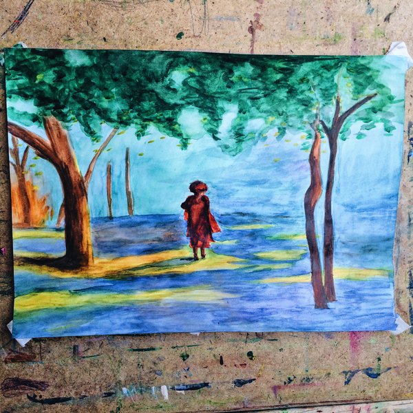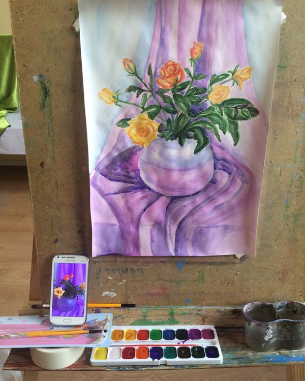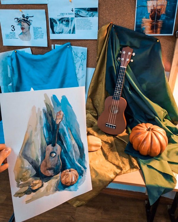Во время занятий сделать ещё пару набросков и повозиться с красками