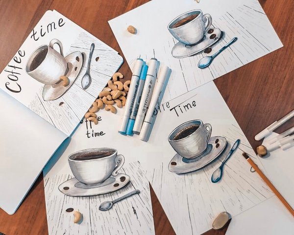 Пробное занятие по скетчингу Зарисовки на тему кофе ️