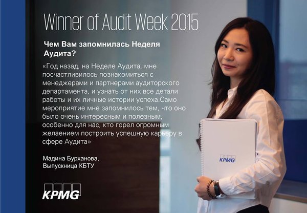 Kpmg Kazakhstan (18.11.2016): Успейте зарегистрироваться на KPMG Audit Week 2016! Не пропусти свой шанс! Подавайте свою заявку и узнавайте больше о мероприятии пройдя через ссылку на наш сайт: