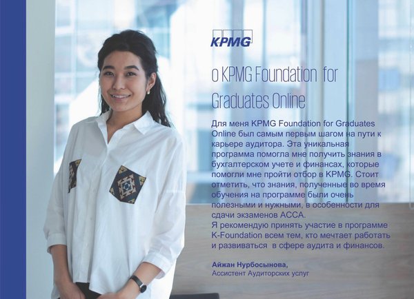 О: Мне 27 лет, работаю в Отделе маркетинга KPMG в Казахстане и Центральной Азии в г. Алматы.