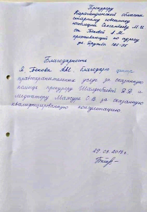 В МПЦ поступили благодарственные письма медиаторам МПЦ г.Алматы Жанботаевой К.И. и г.Актобе Кенжехановой А. Граждане благодарят наших медиаторов за отличную работу, оказанную помощь в урегулировании споров и разрешении правовых вопросов. Медиатору МПЦ г.Алматы Кадыр Салтанат благодарственное письмо поступило из Германии от гражданина Езерского М., который очень благодарен за добросовестное выполнение своих обязанностей и желает дальнейших успехов. mpc-info.kz