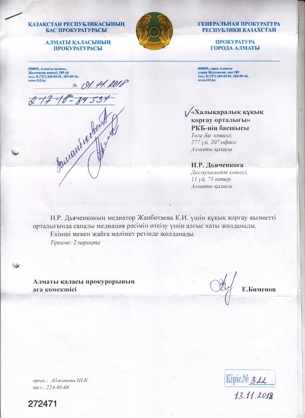 или других, Вы можете обратиться в Международный правозащитный центр по электронной почте: jandilda@mail.ru или по адресу: г.Алматы мкр.Таусамалы ул.Сейдильда дом 40. Наш сайт: