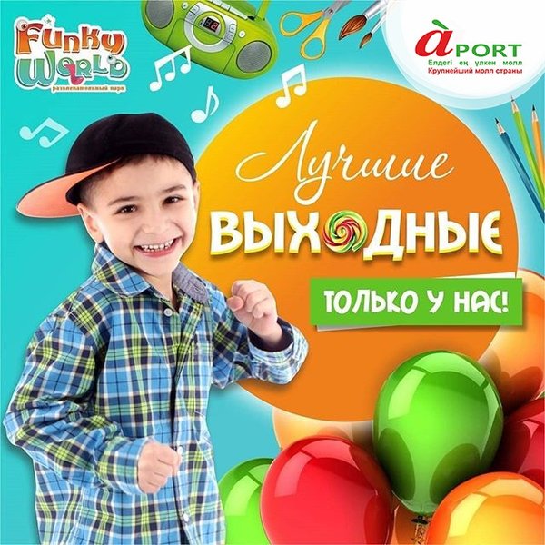 істейміз. Жұмыс істейтіндер: — Барлық дүкендер; — Аквапарк MIAMI&HAWAII; — Funky LAB; — Мейрамханалар. Біз сіздерге жағымды демалыс пен көптеген керемет және жағымды сезімдерді сезінуге тілектеспіз. Сіздерге деген сүйіспеншілікпен, Молл Апорт! _________ Друзья, трудовые будни подходят к концу, а это означает, что пора запланировать свои выходные! Наша программа на выходные: 29 мая (суббота): — Премьерный показ киноленты «Где мое кольцо?» В Kinoplexx вместе с АЙКЫН @aikyn; — Вас будут развлекать наши аниматоры; — Магический саксофон порадует всех наших гостей в Food Mall. 30 мая (воскресенье): — Квест «Монстры на каникулах»; — Аниматоры; — Удивительное звучание саксофона приятно удивит наших гостей в Food Mall. В выходные дни мы работаем с 10.00 до 21.00. Работают: — Все магазины; — Аквапарк MIAMI&HAWAII; — Funky LAB; — Рестораны. Мы желаем Вам приятных выходных и массу ярких и позитивных эмоций. С любовью, ваш молл Апорт!
