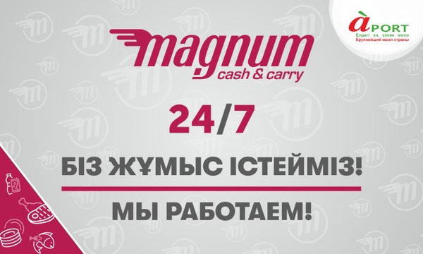 Достар, Апорт моллындағы Magnum гипермаркеті тәулік бойы жұмыс істейді! Біз сіздерді күн сайын, кез келген уақытта күтеміз, өйткені бізде барлық қажетті өнімдерді сатып ала аласыздар! ____________________ Друзья, гипермаркет Magnum в молле Апорт работает круглосуточно! Мы ждем вас ежедневно, в любое время, ведь у нас вы сможете приобрести все необходимые продукты!
